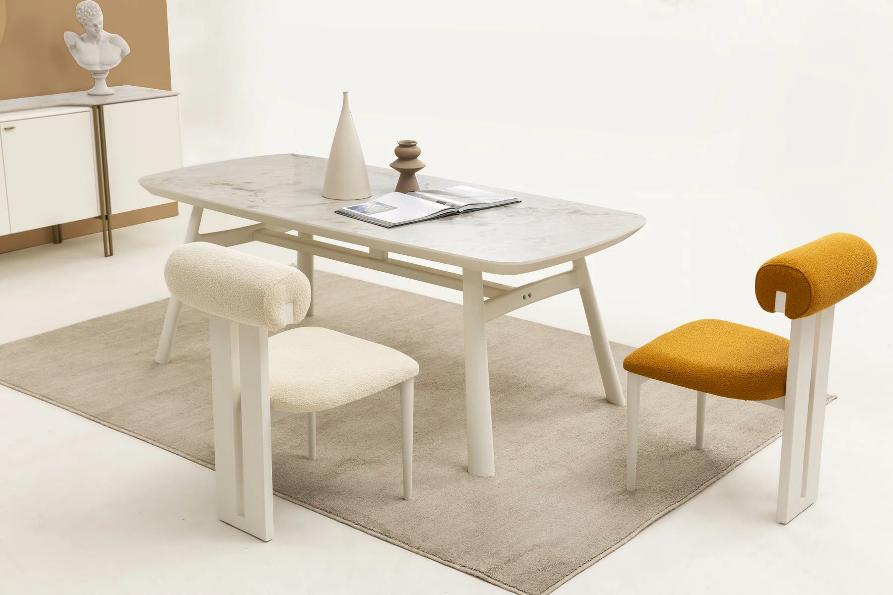 Puffy Modern Yemek Odası ile evinizin atmosferini değiştirin. Şık ve modern tasarımı, evinize zarafet katacak ve aileniz ve misafirleriniz üzerinde unutulmaz bir iz bırakacaktır. Dayanıklılığı ve konforlu yapısıyla, uzun yıllar boyunca keyifle kullanabileceğiniz bir yatırımdır.
